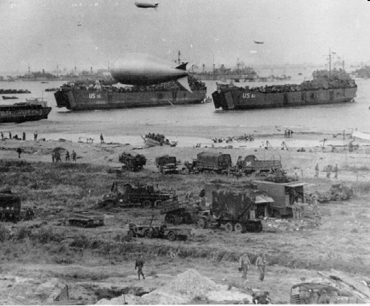 91k | USS LST-61 and USS LST-55 unloading cargo on Omaha Beach, Normandy, June 1944. | Robert Hurst | |