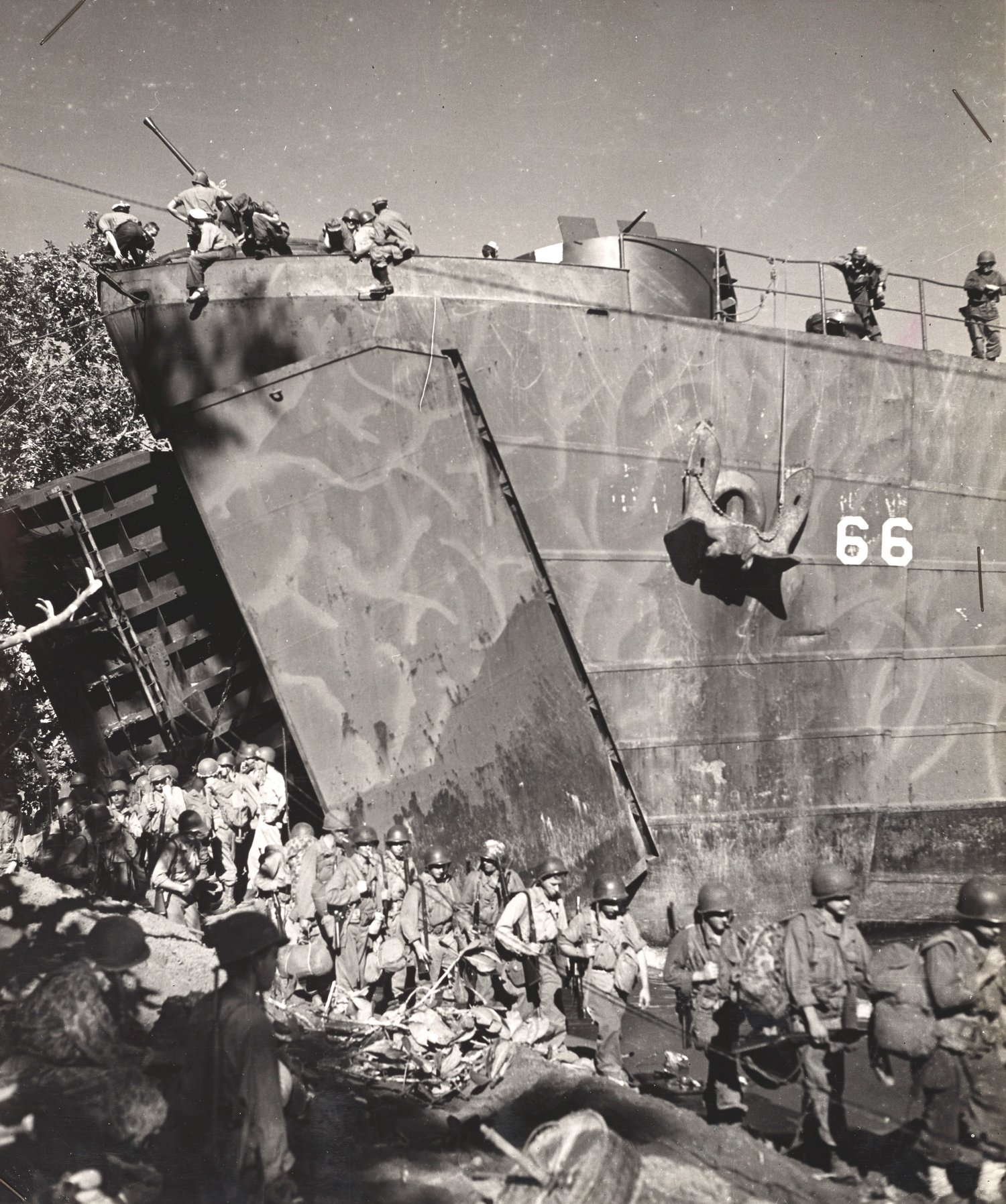 US National Archives LST-66 War Diary, Identifier 78270636, Local Identifier 26-G-2112, US Coast Guard photo 2112 by Coast Guard photographer Halscher. |
