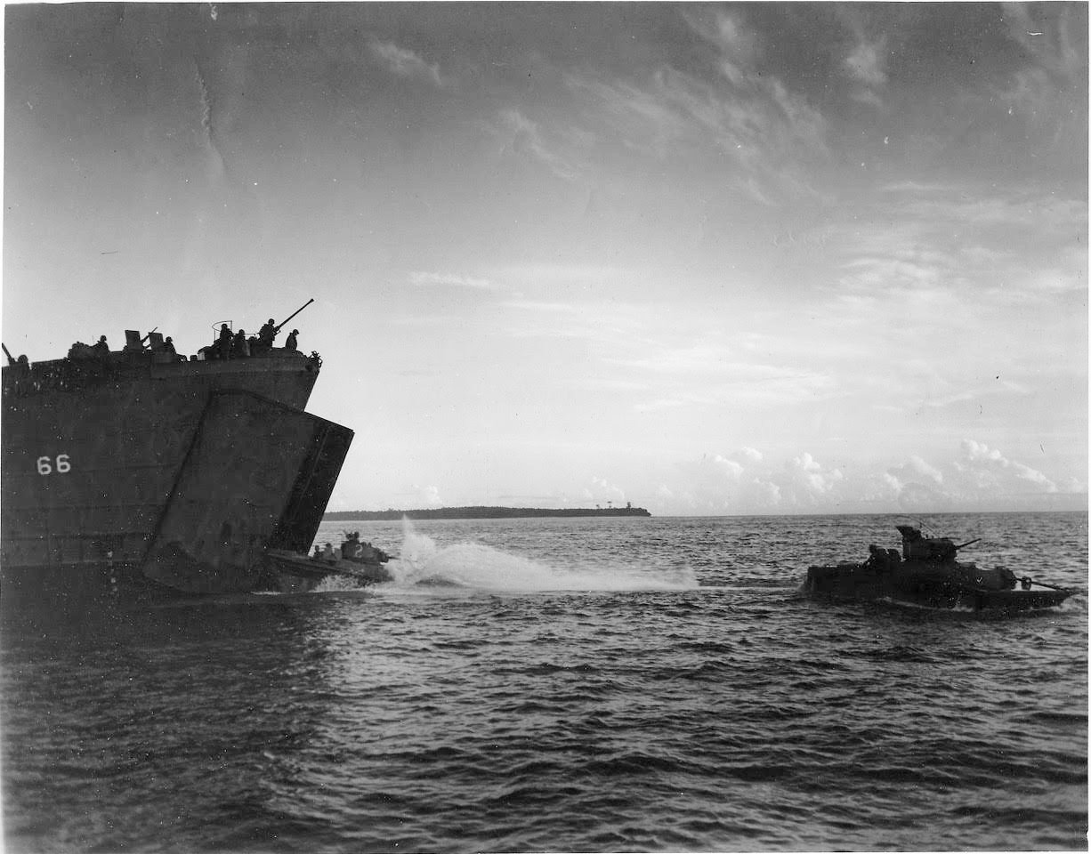 Refs. USS LST-66, USS John Rodgers and USS Virgo War Diaries, National Archives 205585106 Local Identifier 26-G-218, US Coast Guard photo # 2185 by Sturgis |