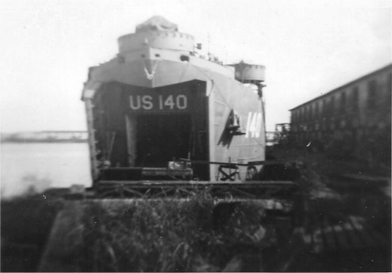 45k | USS LST-140 preparing to load railroad cars at Oran, Algeria for delivery to Marseilles, France. | Wesley E. Reed QM2/c USS LST-140 | |