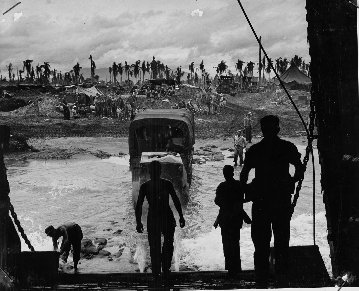 the stuff of war to General MacArthur's forces now occupying Leyte Island, circa late 1944-early 1945
