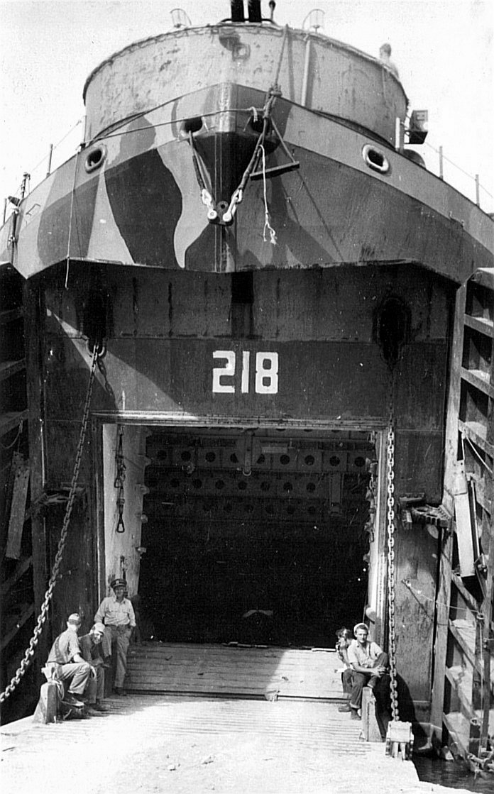 171k | USS LST-218 beached at Okinawa, 9 July 1945. Note that she is carrying LCT-1395 secured to her main deck. | Stan Galik for his uncle Andrew (Andy) Galik USS LST-218). Stan Galik is the son of Stan Galik SC/2c USS LCI(L)-35) | |