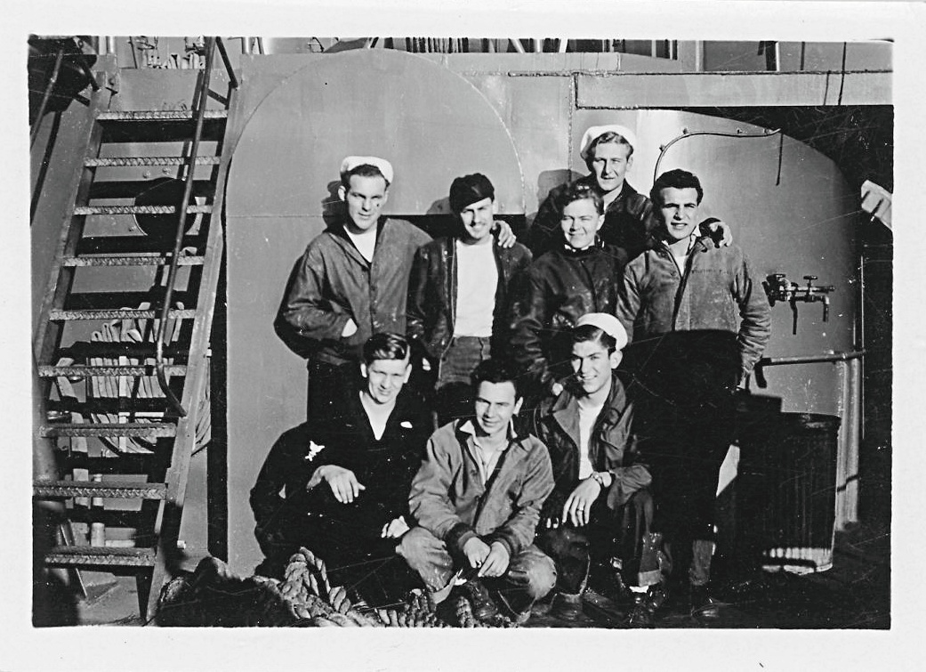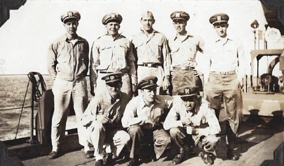 159k | USS LST-264 crew members, identified as possibly deck crew, date and location unknown. | Mel Bashore for his father LTjg. Lee T. Bashore USS LST-264 | |