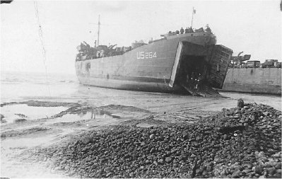 34k | USS LST-264 high and dry on the beach at Normandy waiting to unload, circa June 1944. | Mel Bashore for his father LTjg. Lee T. Bashore USS LST-264 | |