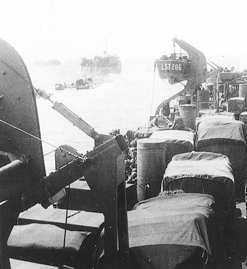 58k | USS LST-286 off the Normandy beachhead waiting to unload | Hyperwar US Navy in WWII | |