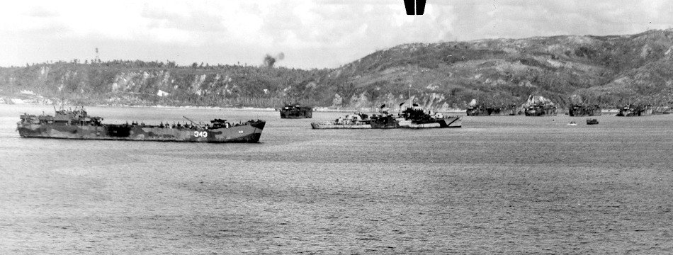 97k | USS LST-343 along with other ships near Guam, 24 July 1944, during the invasion, as seen from the