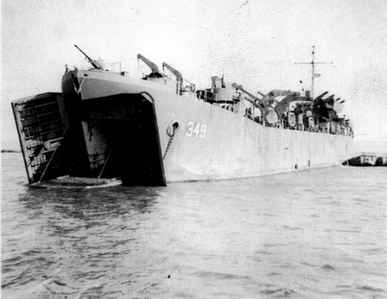42k | USS LST-349 anchored off the coast of Italy, 1943. | Dennis Painter for his Father-in-Law John S. White USS LST-349 | |