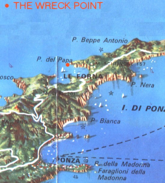 Ex-USS LST-349 wreck location off Isla de Ponza Italy, 40.55N 12.58W 100ft below the surface |