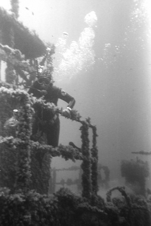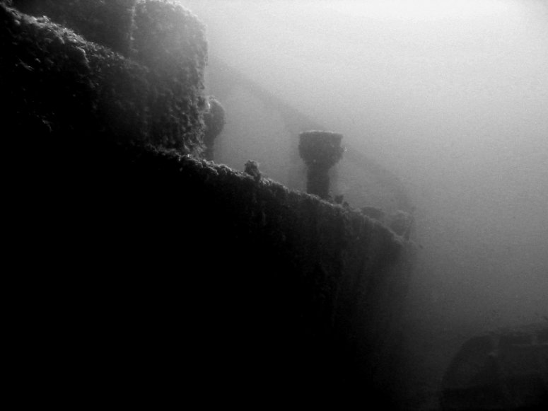 Underwater view of ex-USS LST-349 wreck |
