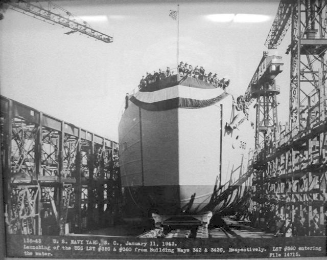 118k | LST-360 keel laying ceremony, 21 November 1942, at Charleston Navy Yard, Charleston, S.C. US Navy photo |