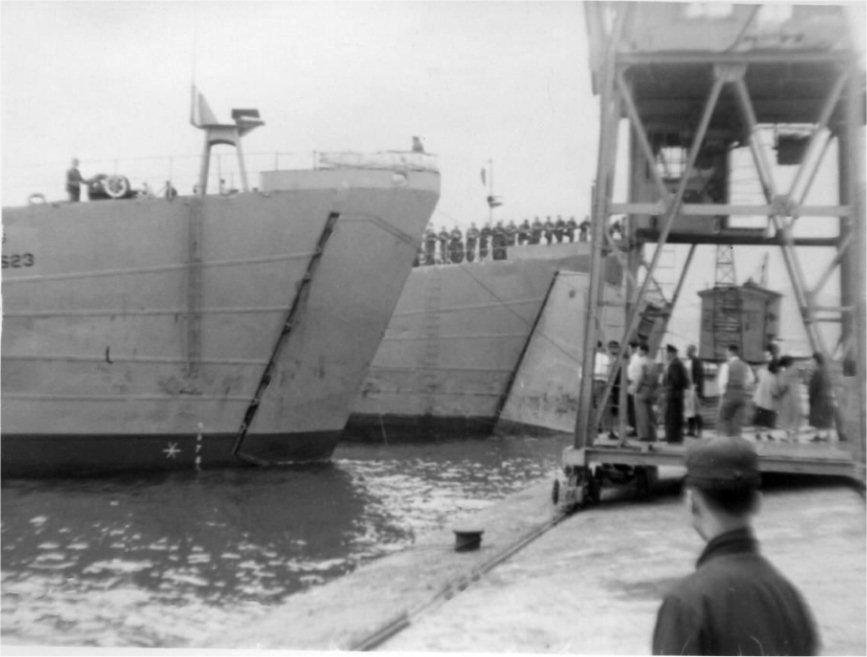 297k | USS LST-623, USS LST 1027 and USS LST-697 unload across