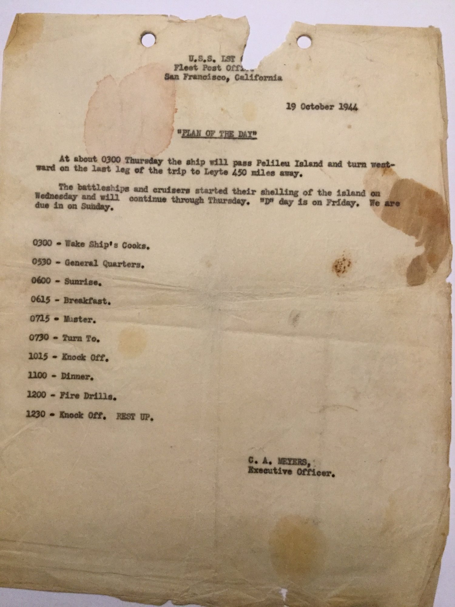401k | USS LST-623 Plan of the Day, 19 October 1944 | Kathleen Golden for her father James H. Murphy USS LST-623 | |