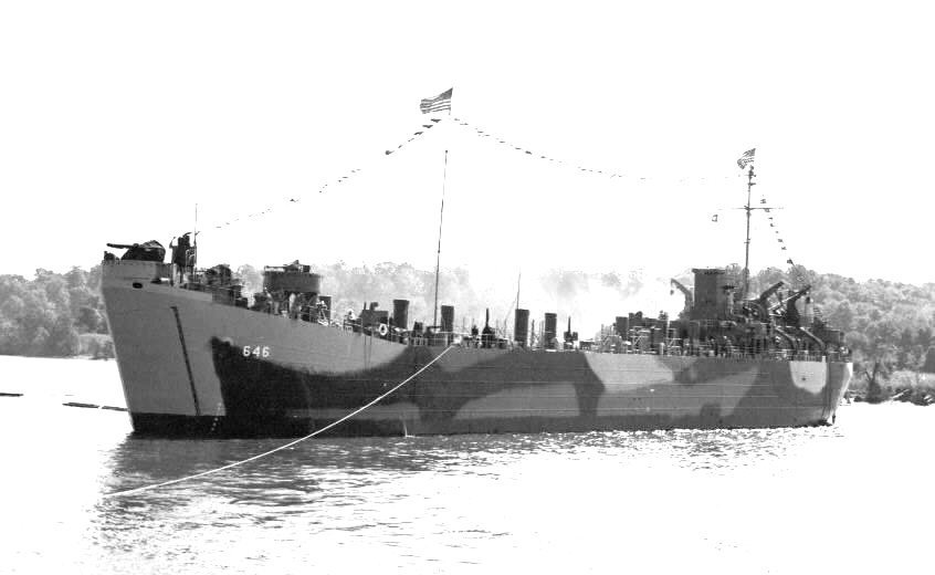 389k | USS LST-646 crew photo taken on commissioning day, 13 October 1944, at Chicago Bridge and Iron Co., Seneca, IL | Joe Schmidt for his grandfather Leslie Schmidt RDmC USS LST-646 | |