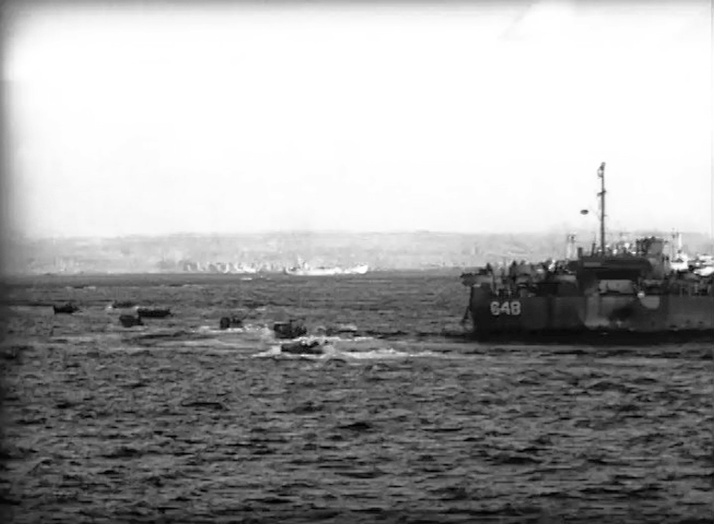 Frames from a short film called "Amphibious Invasion of Iwo Jima, H-Hour Minus One". Dept. of the Navy. National Archives ID 80201, Local ID 428-NPC-15841. |