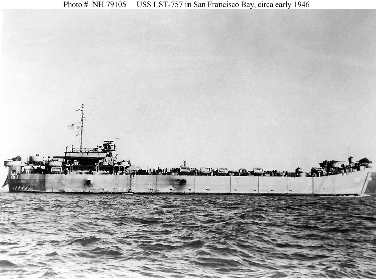 85k | USS LST-757 underway in San Francisco Bay, circa early 1946.