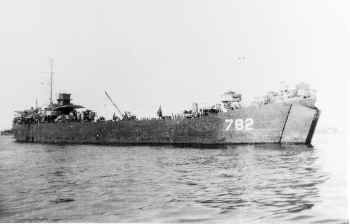 105k | USS LST-782 at anchor, date and location unknown.