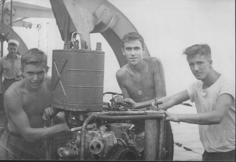 USS LST-984 crew members on the aft superstructure. |