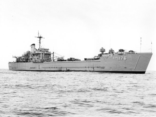 71k | USS Graham County (LST-1176) underway in 1963, location unknown.