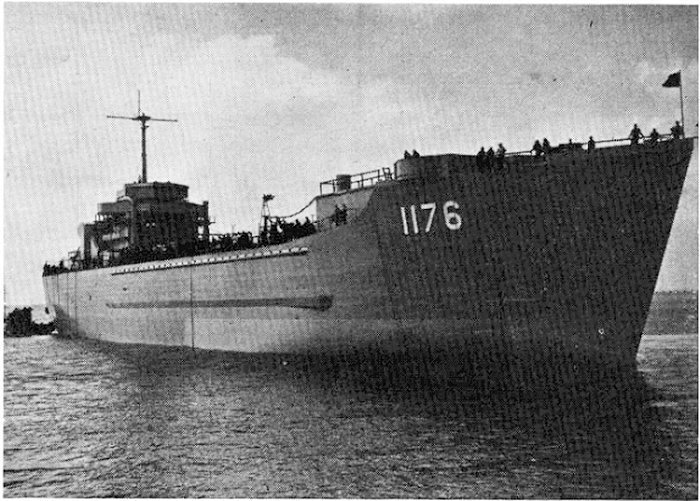 96k | USS Graham County (LST-1176) underway, circa 1957-58, location unknown. US Navy photo from "All Hands" magazine, October 1958. |