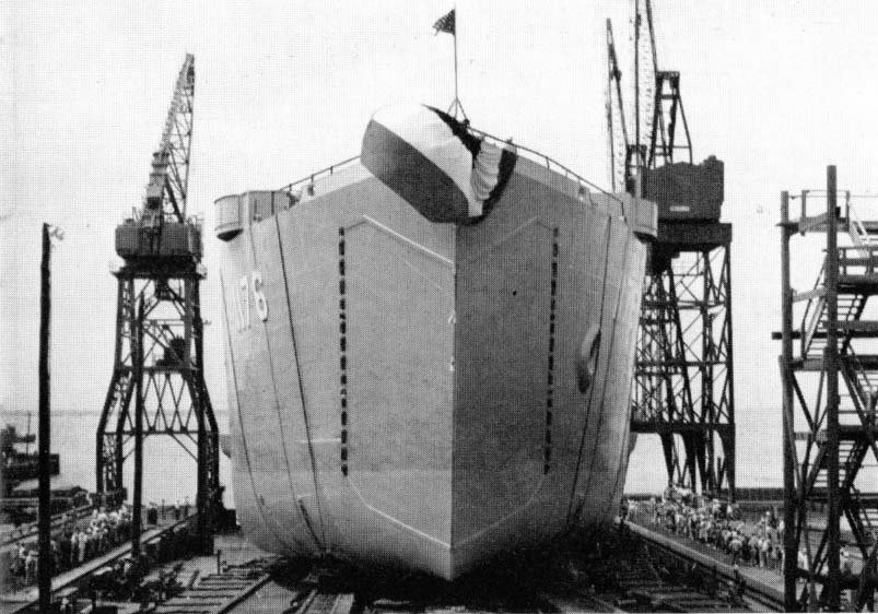 94k | Graham County (LST-1176) slides down the builders ways as she is launched, 9 September 1957, at Newport News Shipbuilding and Dry Dock