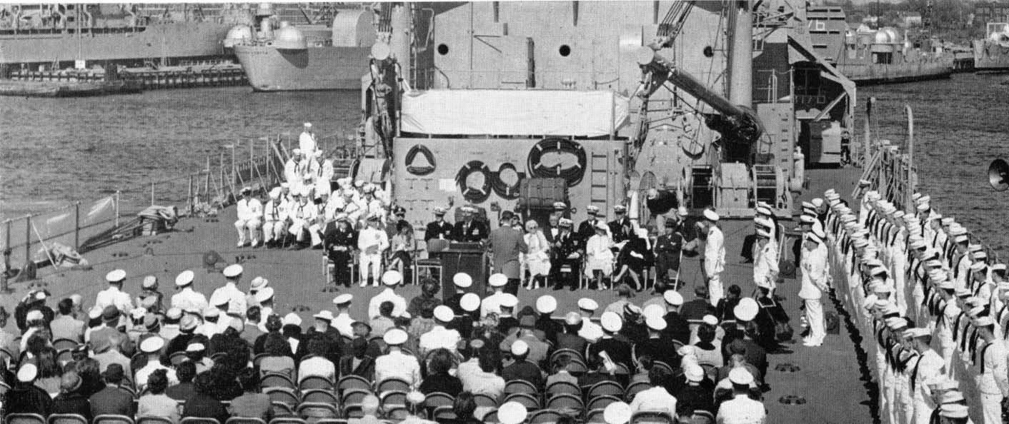 195k | USS Graham County (LST-1176) commissioning ceremony, 17 April 1958, at Newport News Shipbuilding and Dry Dock Corp. Newport News, VA. Photo from the shipyard in house publication "Newport News Shipbuilding and Drydock Co. Bulletin". |
