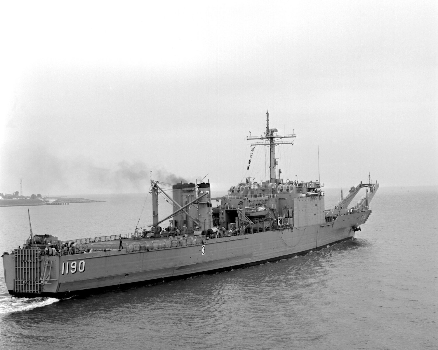 281k | Boulder (LST-1190) outbound to sea exiting Chesapeake Bay at Norfolk, VA., date unknown.