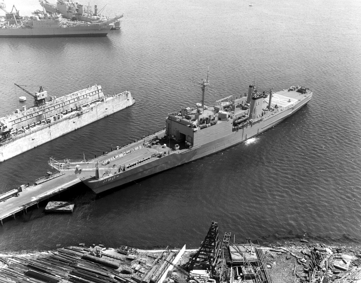 373k | Boulder (LST-1190) at the National Steel and Shipbuilding Co. shipyard pier, 13, San Diego, CA., in April 1971. In the