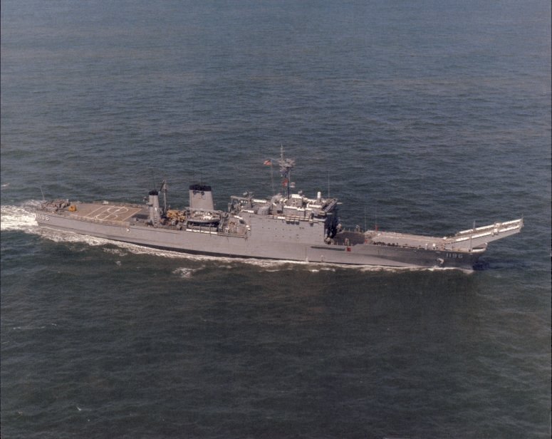 46k | USS Harlan County (LST-1196) at Mahon, Menorca, Spain, 26 March 1988. | Photo by Ignacio Lopez ex member Armada Espanola |