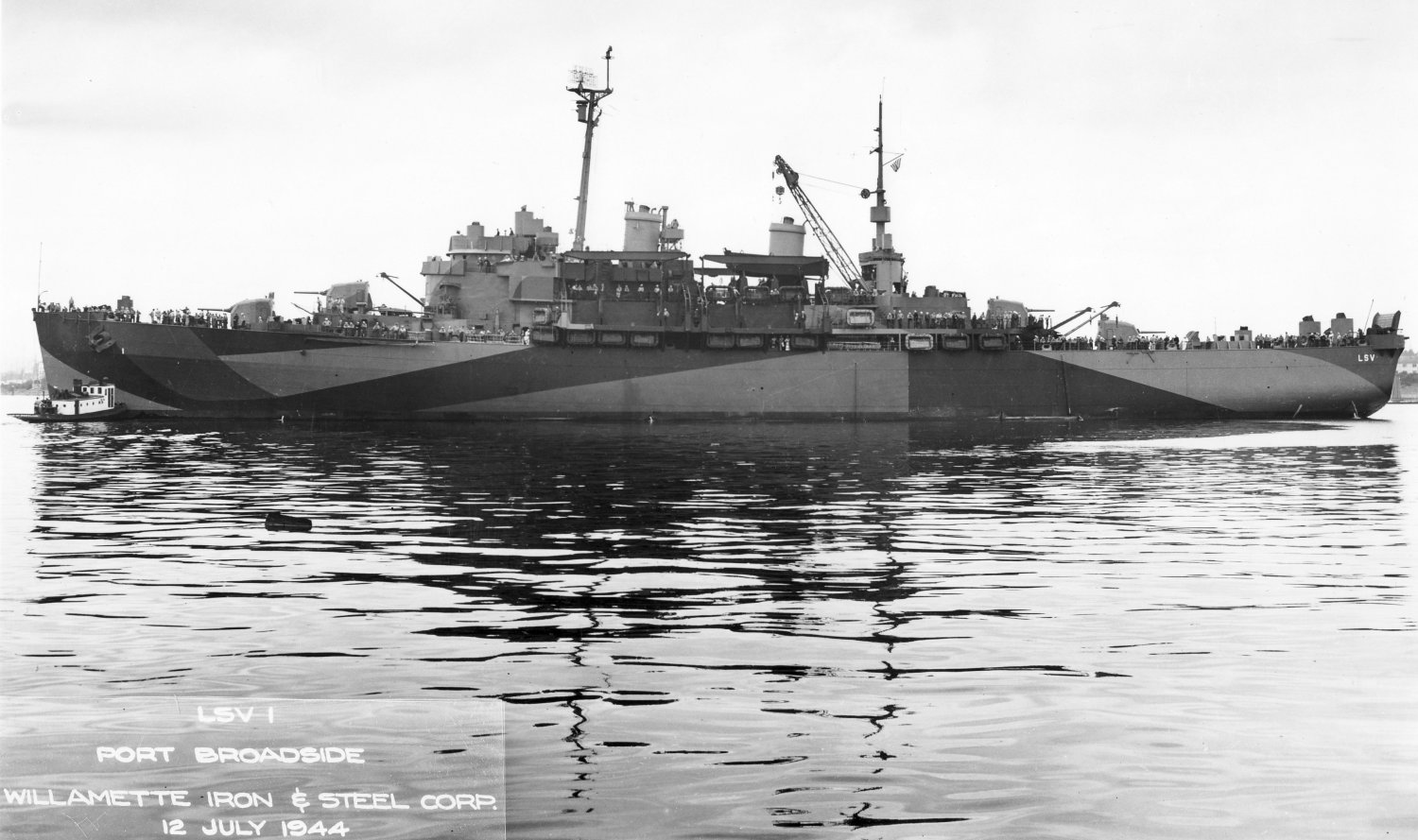 209k | USS Catskill (LSV-1) broadside view while underway near her builders yard, Willamette Iron & Steel, Corp., Portland, OR., 12 July 1944.