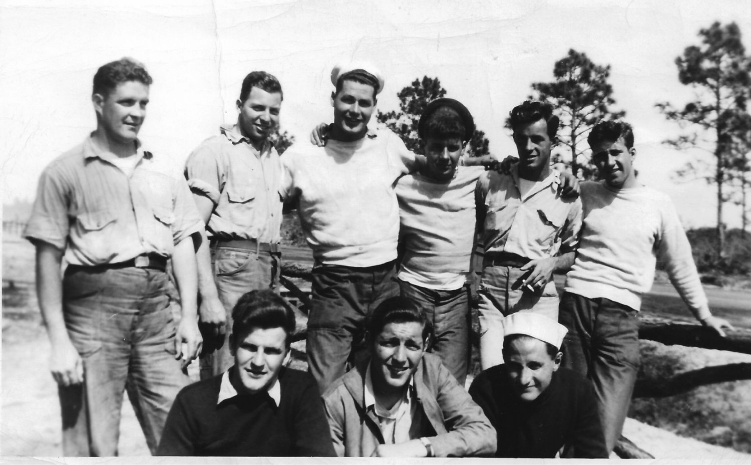 193k | Early crew of LCT(5)-81 – Standing: Louis Kozma, Wilcox, Clifford Kitz, W.W. Brown, Joseph Briere, Charles Amos. Front: Douglas Swanson, J.W. Brown, Hatch, New Orleans 1943. | ||