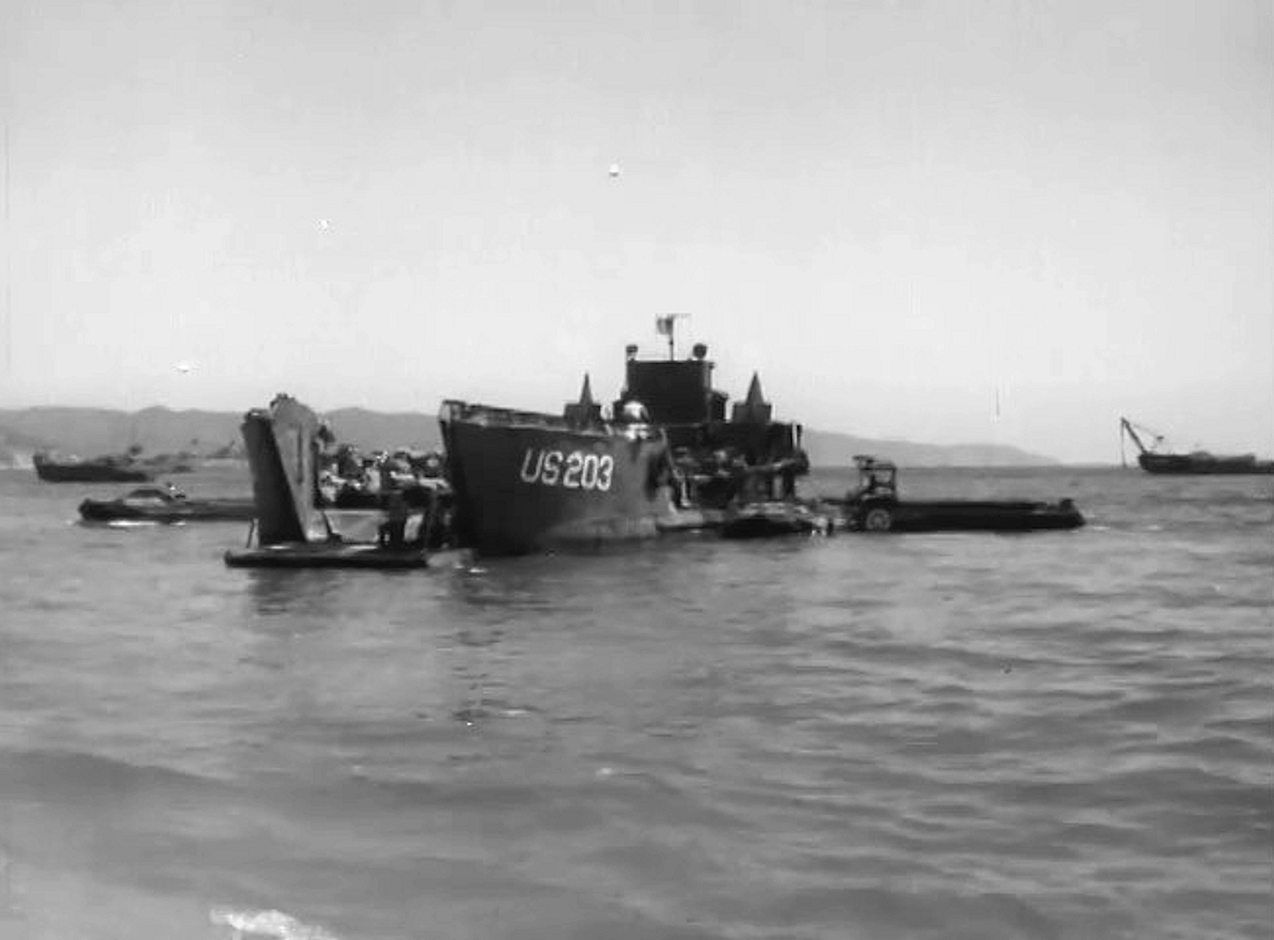 462k | LCT(5)-203 in Southern France, 16 August 1944. rame image from a short film named "Invasion of Southern France: German Prisoners, Beachhead scenes, and PT Boast