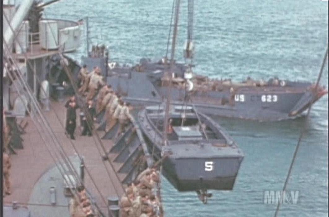 178k | LCT(6)-623 loading US Army troops from a transport to deliver them at the Normandy beachhead, June 1944. US Army photo. |