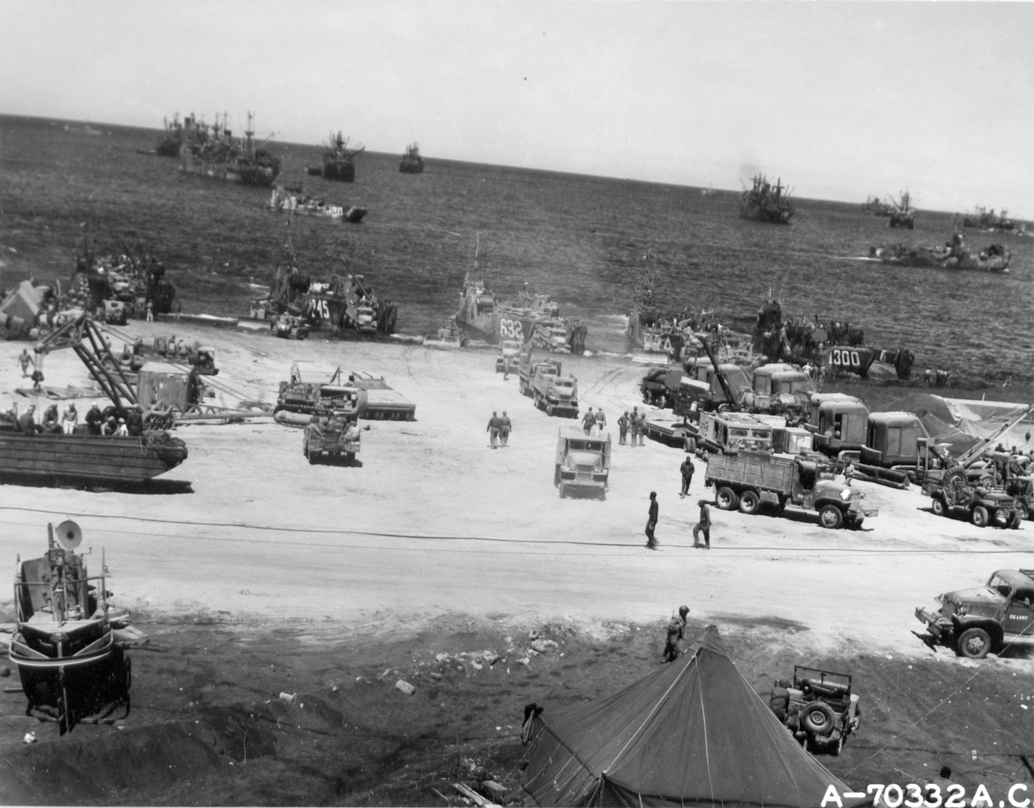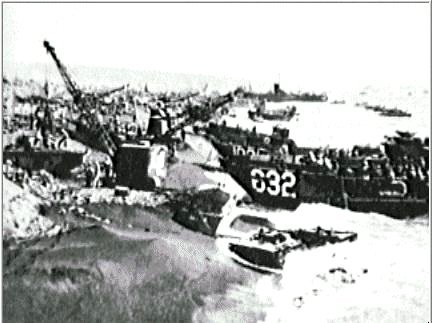 275k | LCTs on the beach at Iwo Jima, from the left to right;