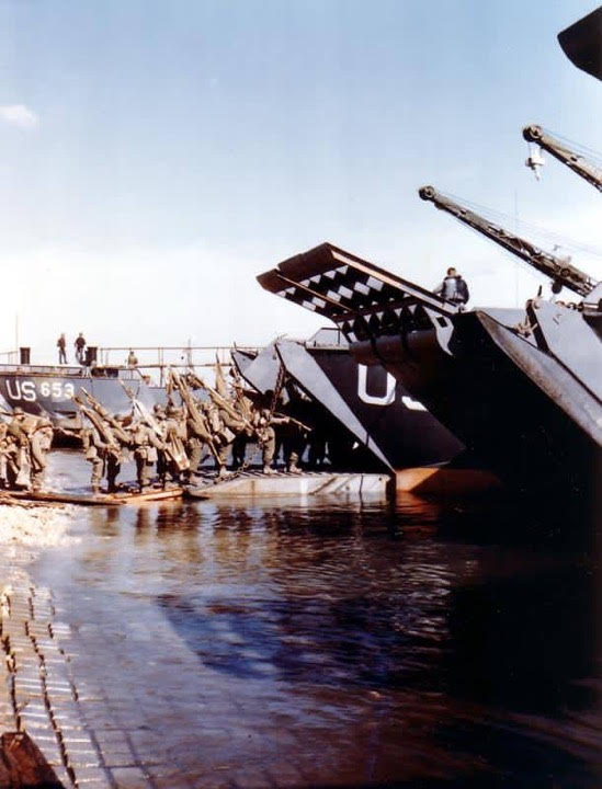 62k | LCT(6)-653 loading troops and equipment in an English port prior to the Normandy invasion, circa early June 1944. | Yu Chu | |