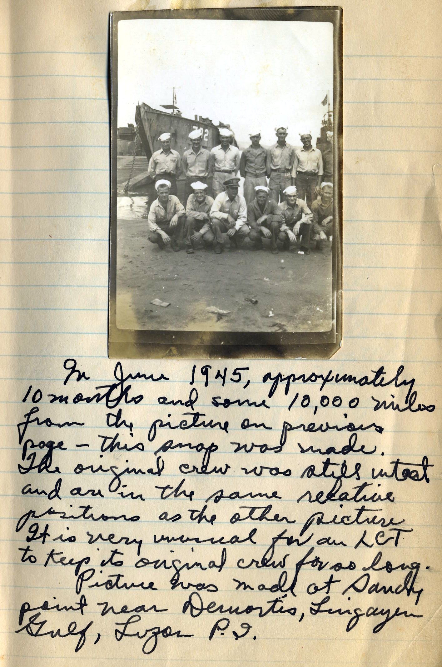 618k | LCT(6)-732 crew in June 1945 at Sandy Point, Luzon Island, ten months after deploying to the South Pacific. | Joel Miller for his father LT. Milford Braxton Miller, Skipper, LCT-732 | |
