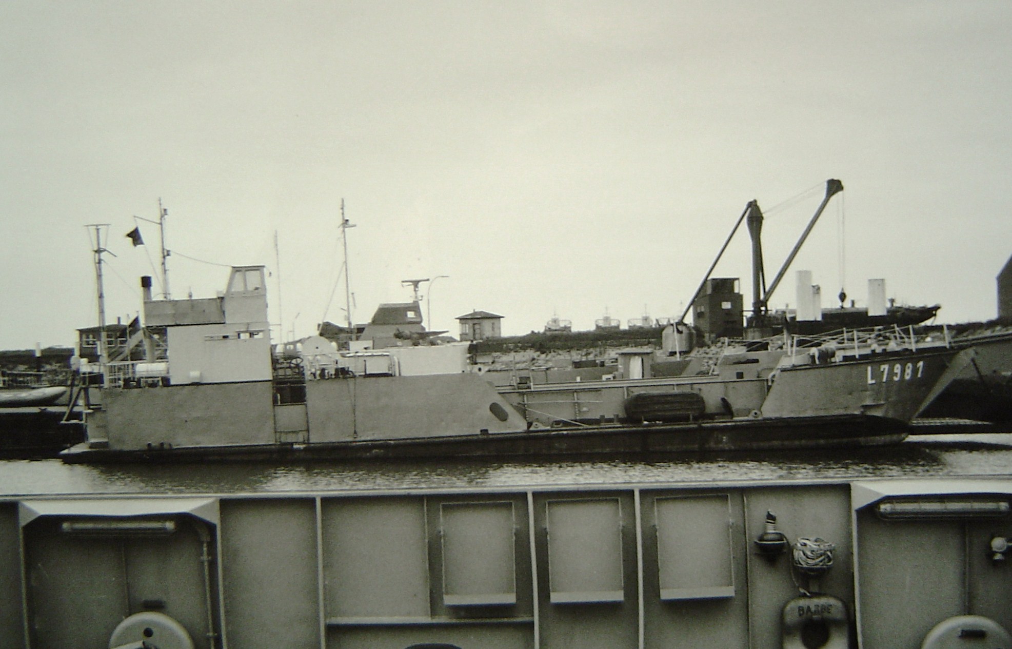 and four ex-German landing craft. Photo courtesy Harland G. Voigt, Jr. |