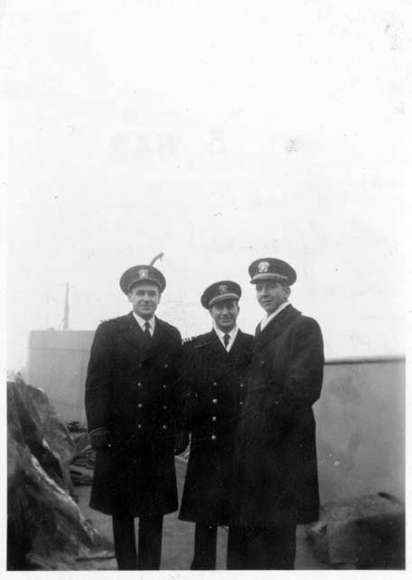 22k | LCT Flotilla Seventeen staff, LT. Greenleif (left), LCDR. Lynn (center) and LT. Richtner, date and location unknown. | Photo by James Procops BM2/c, LCT-811 | |