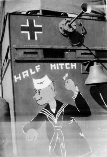 35k | LCT(6)-811 conning tower. Note; "Half-hitch" painted on the side, date and location unknown. | Photo by James Procops BM2/c, LCT-811 | |