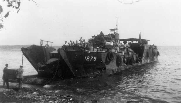 landing vehicles and troops of the 163rd RCT and bulk material including ammunition and rations onto Blue Beach, Jolo Island, Sulu Archipelago, Philippine Islands, between 1036 and 1135 hours,