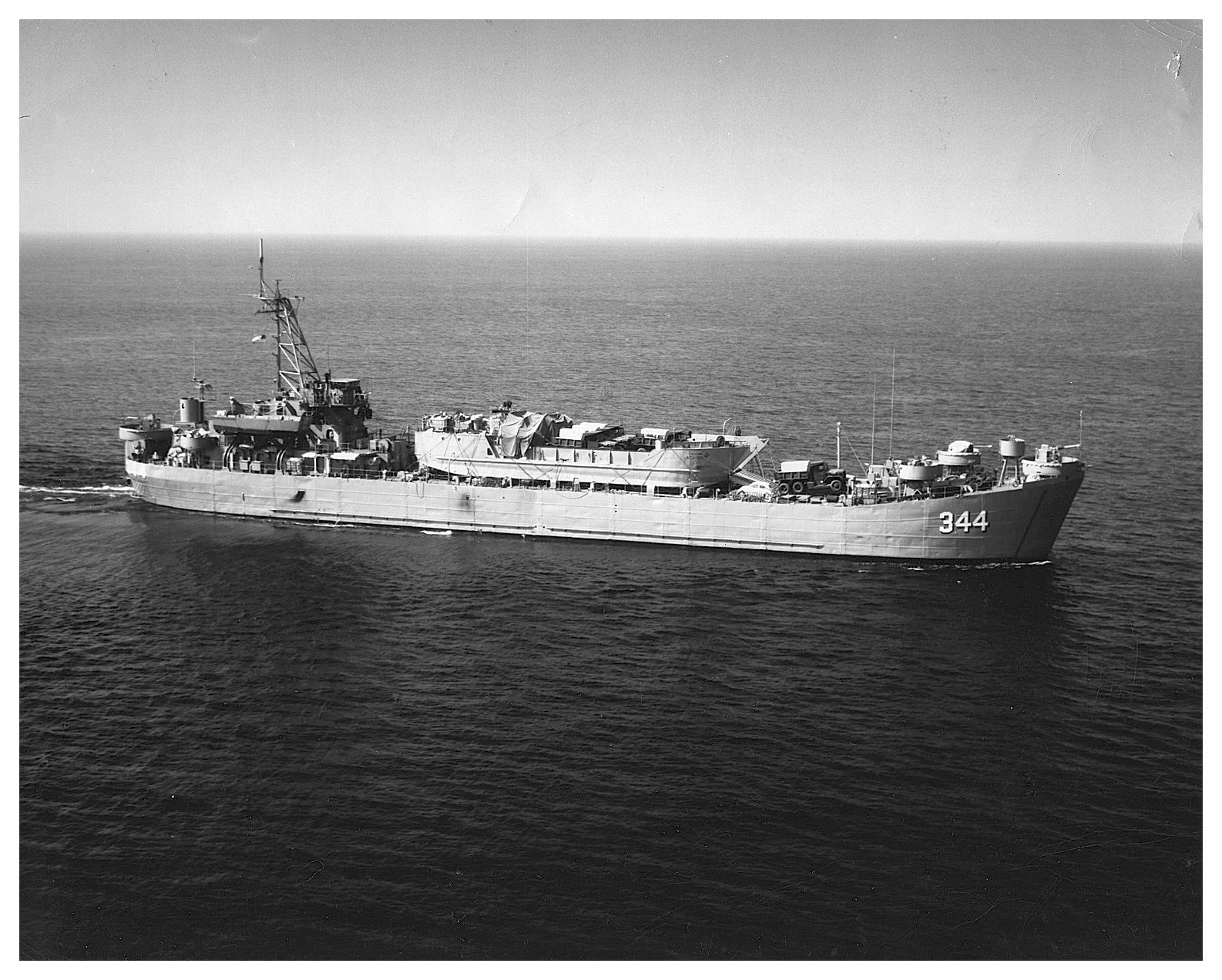 389k | USS Blanco County (LST-344) underway off Guam in the 1960s with