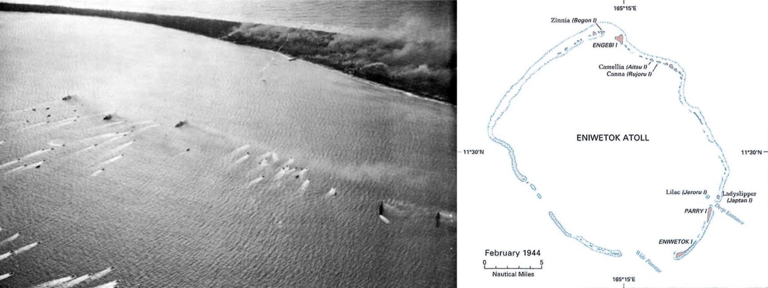 Eniwetok - The Battle of Eniwetok was fought 17-21 February 1944. The 22nd Marines and army troops went ashore on Engebi Island, which was the northern rim of the atoll without
