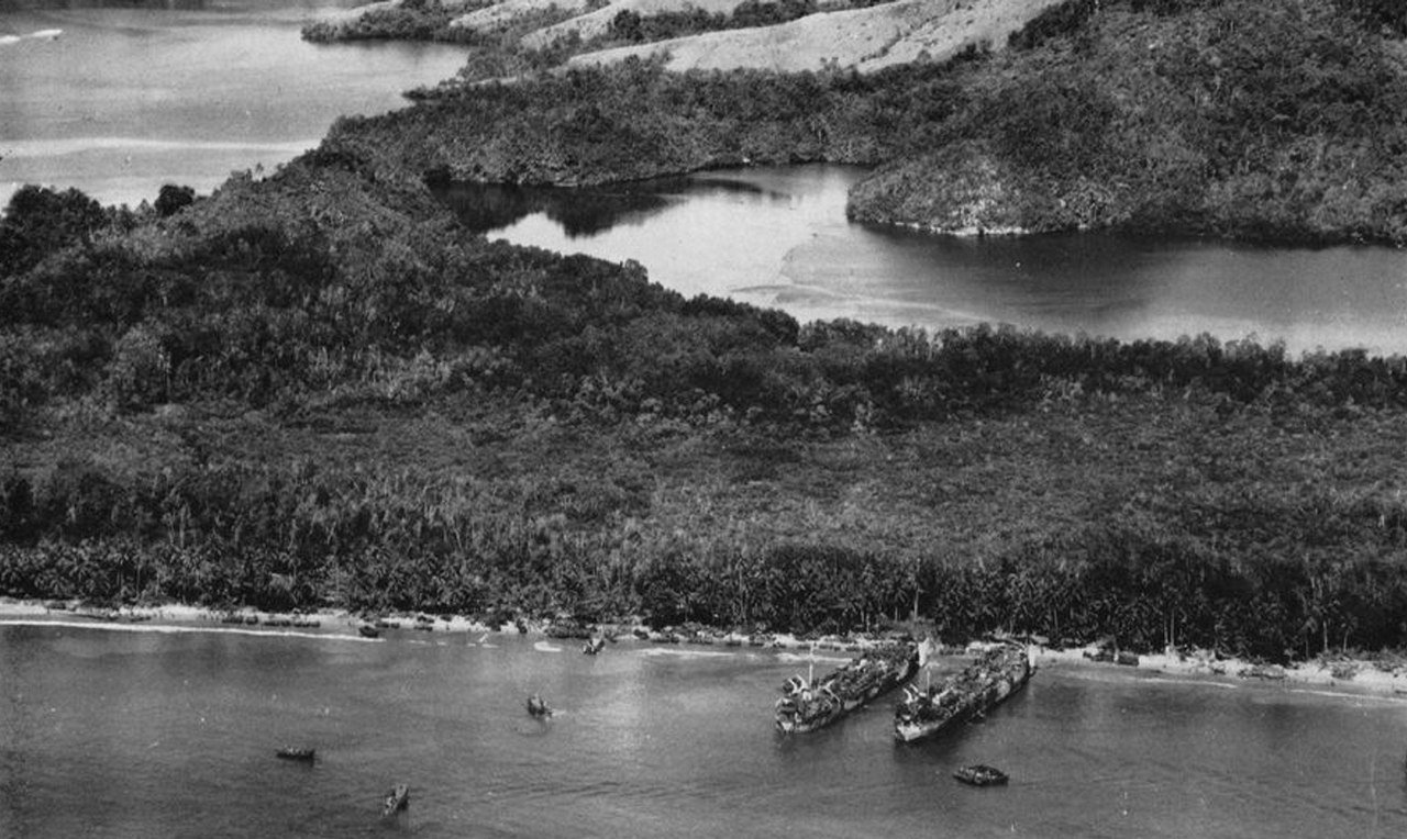 Photo - LSTs at Hollandia, 22 April 1944, U.S. Navy from the USS Bunker Hill (CV-17) 1943-1944 cruise book