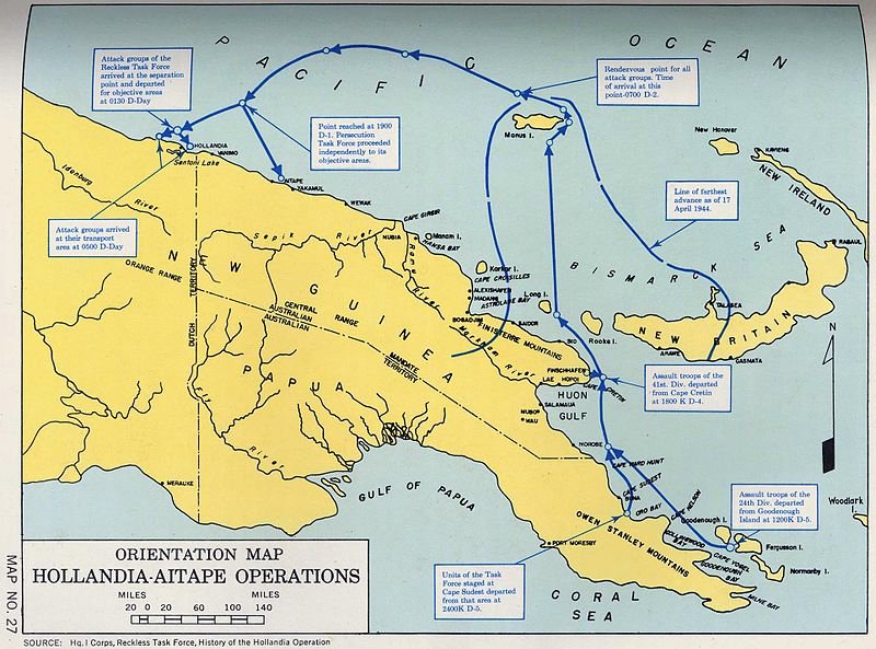 Hollandia - The battle for Hollandia took place 22-27 April 1944. The Japanese high command decided to make an all-out effort to hold Western New Guinea. The