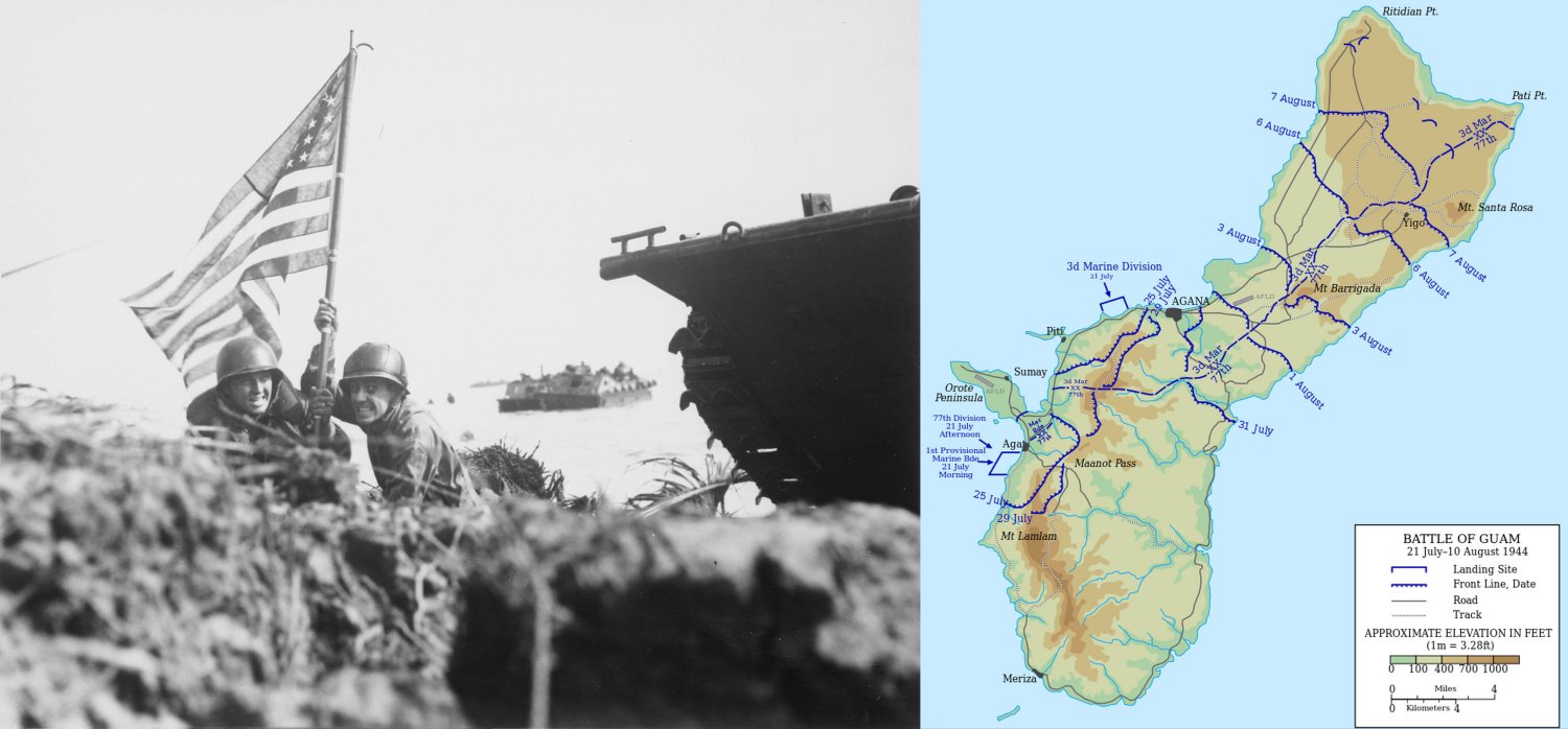 Guam - On July 21 1944 the United States switched its attack on the Marianas to Guam, at the southern end of the island chain. The marine general Roy Geiger, commander of the new III