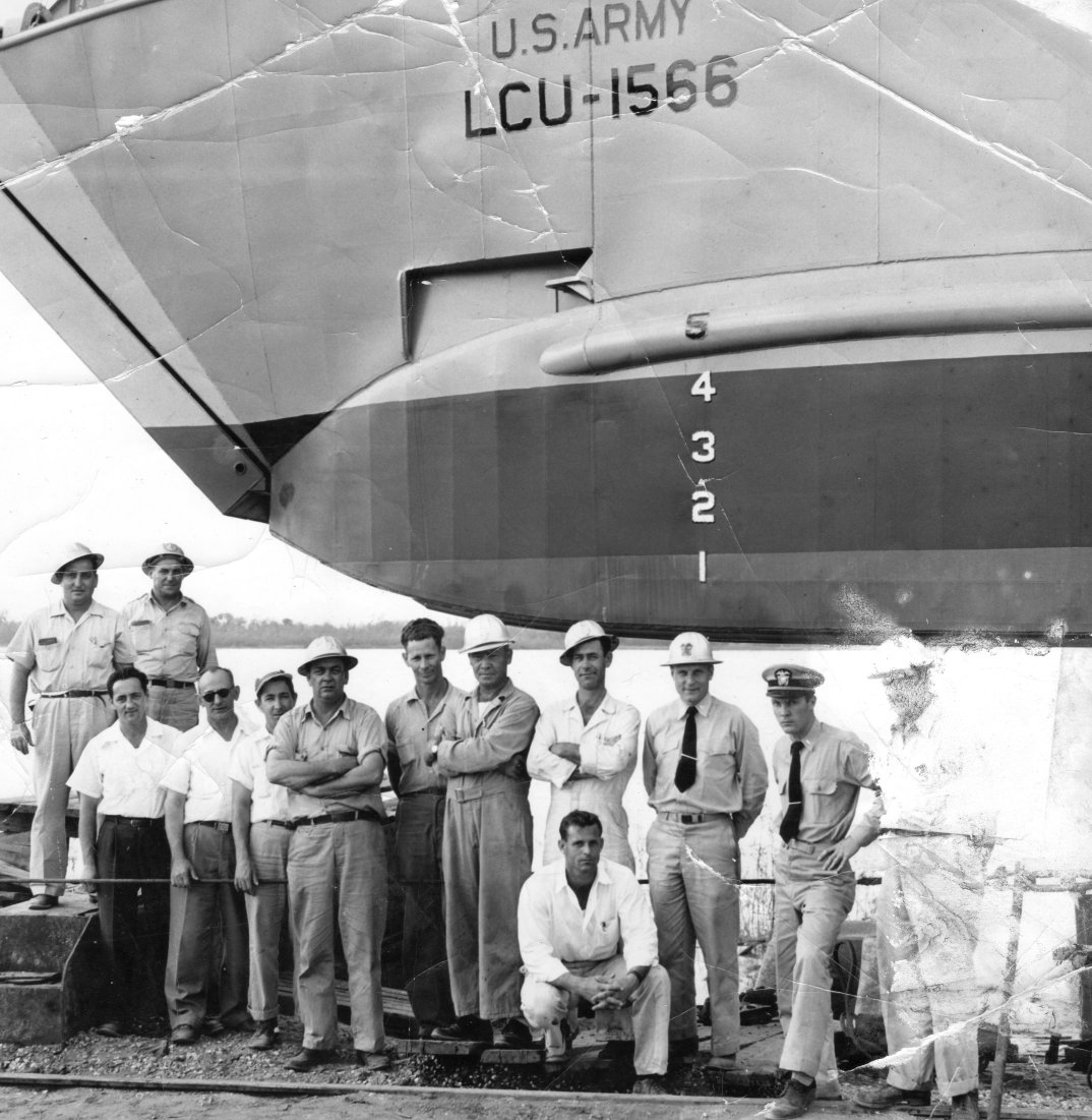 205k US Army LCU-1556 possibly prior to launching at Avondale Shipyards, New Orleans, LA. in 1955. The man without a hat standing in the center of the photo is Chester Robinson all others are unknown. Cletus Robinson
