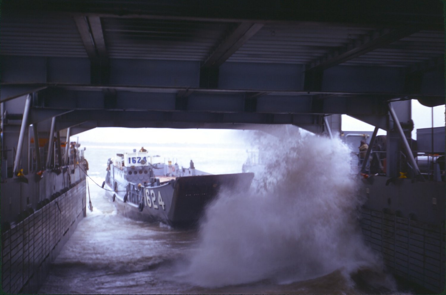 43k | LCU-1624 entering the well deck of USS Oak Hill (LSD-7) in 1967 off the coast of Vietnam