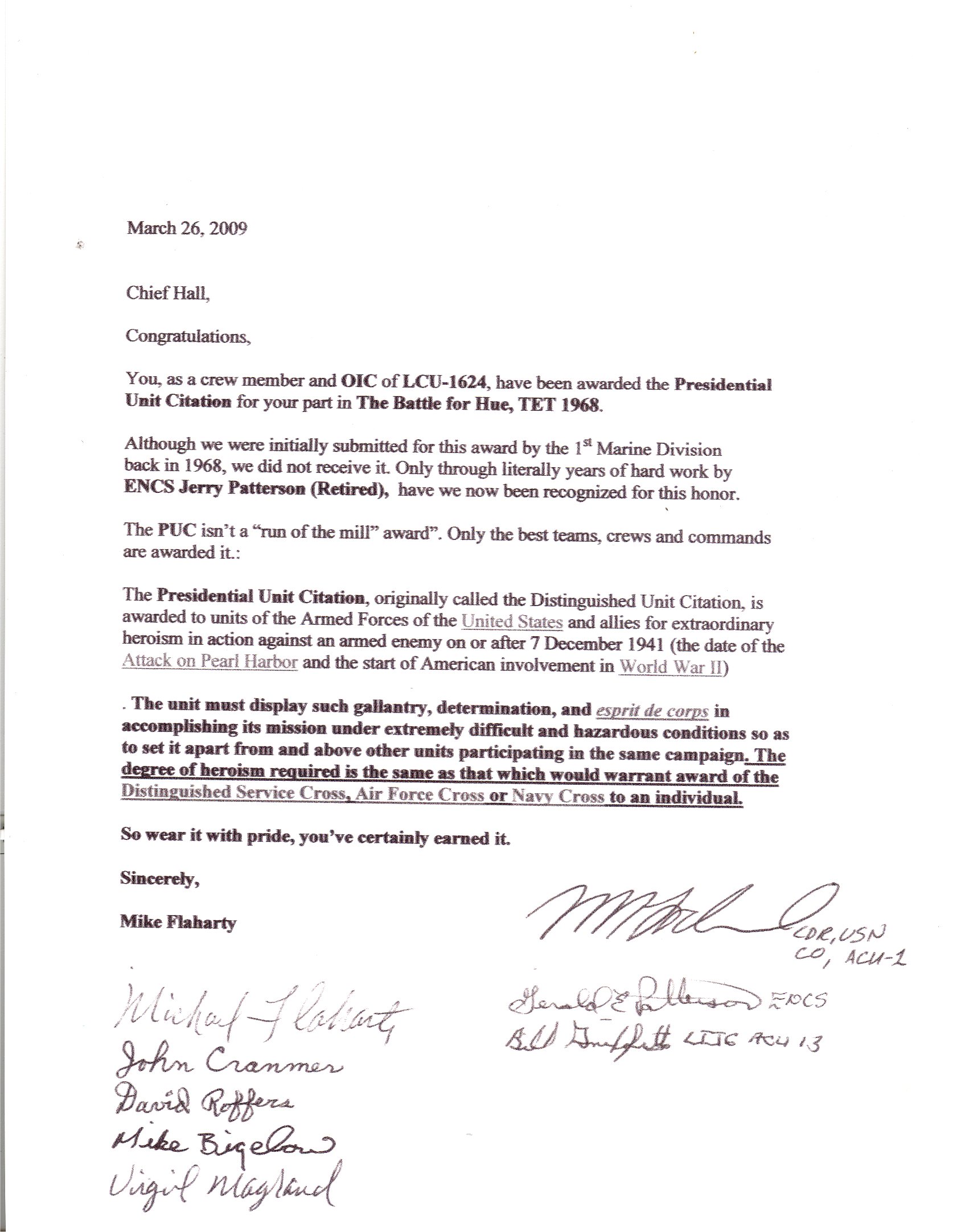 Luther Hall BMC USN, Craft Master LCU-1624 | Citation |