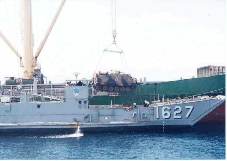 179k | LCU-1627 beached in the background as US Marines prepare to load/unload vehicles. US Navy photo from "All Hands" magazine, January 1993. |