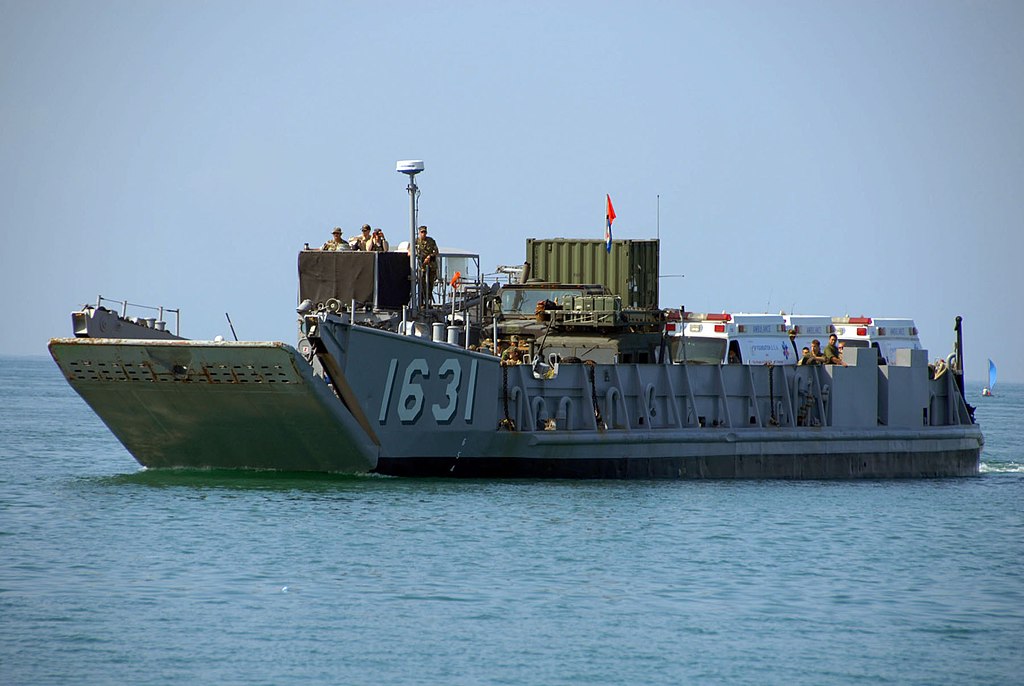115k | LCU-1631 approaches the shore to deliver five of 14 ambulances donated to the Philippines by the 3P Foundation, Republic of the Philippines,