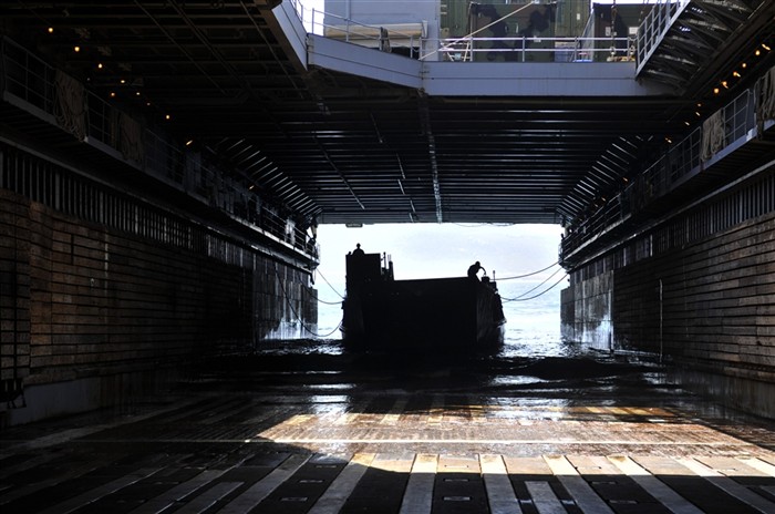 well deck of the the amphibious dock landing ship USS Whidbey Island (LSD-41) in the